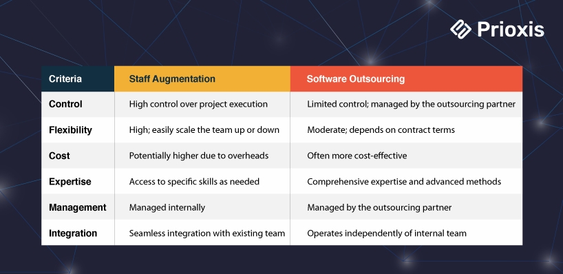 Staff Augmentation vs Outsourcing: A Comparative Table