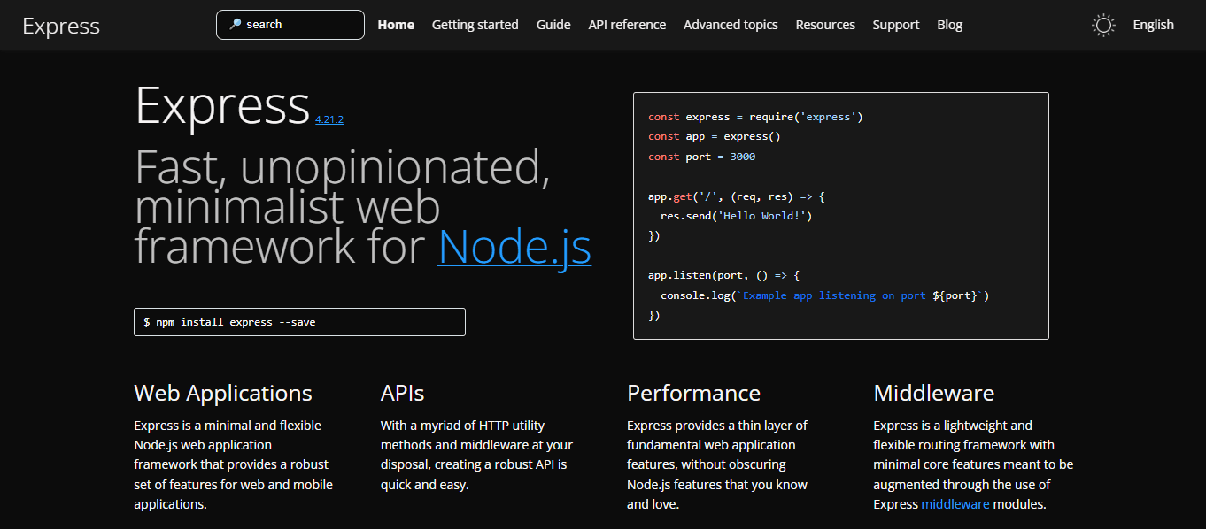 Express.js is a light and very flexible Node.js framework. It provides a thin surface of core web application functionality. It's renowned for being fast and simple. It's ideally done to develop RESTful APIs and single-page applications. Its light and massive ecosystem makes it the go-to choice of developers who need rapid development and agility.