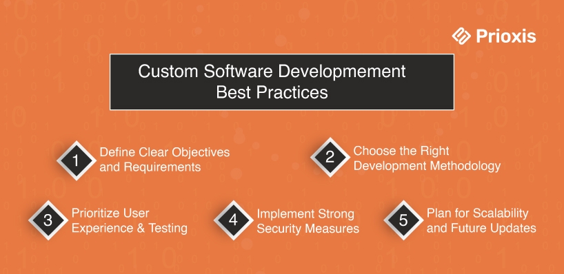 Set up the work so outcomes are clear, delivery is steady, and adoption sticks. These software development best practices keep custom application development on track and measurable. Use these five practices to keep spend under control and results visible: