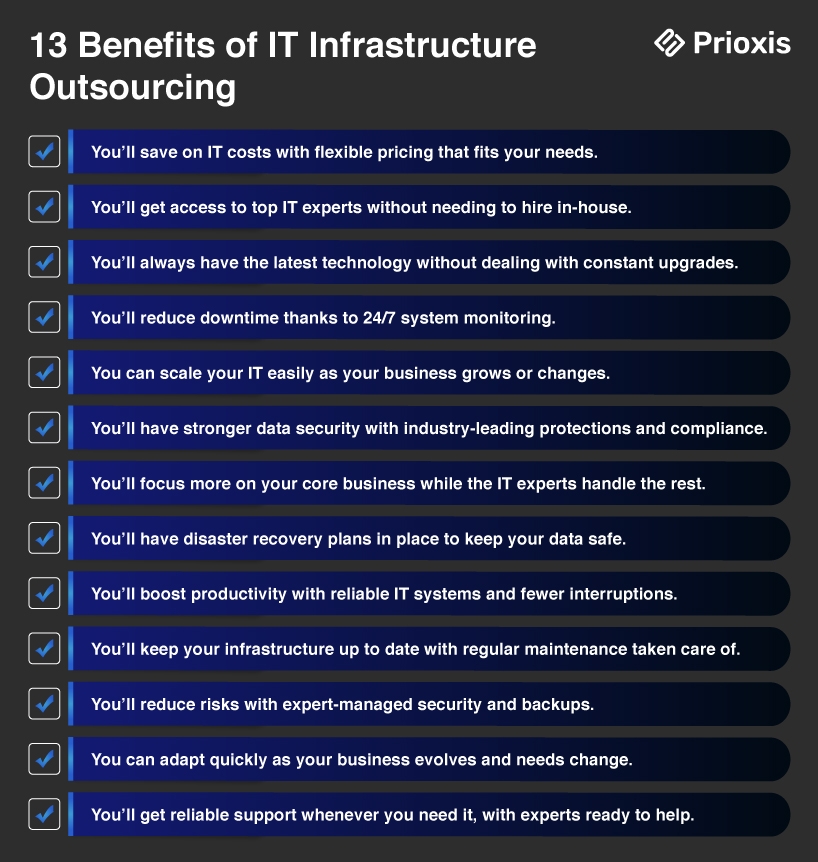 There are plenty of reasons why companies—from startups to large corporations—outsource their IT infrastructure. Whether it’s to save costs or tap into specialized skills, outsourcing offers a more innovative way to manage tech needs.