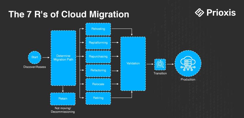 Cloud migration is a complicated process, but with Prioxis cloud migration consulting, it is made easier. We offer elaborate services to ensure that workloads become the most effective piece in migrating from the traditional computing experience to cloud computing, maximizing all the benefits the cloud migration has to offer. In our efforts, we employ the use of the 7 R's in cloud migration: Rehost, Replatform, Retain, Refactor, Rebuild, Replace, and Retire.