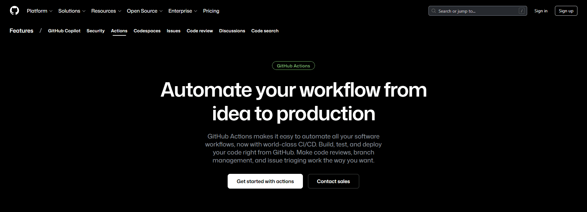 CI/CD should be deeply integrated into your codebase. GitHub Actions allows you to create workflows within your repository.