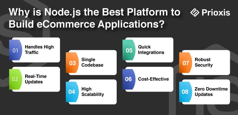 eCommerce app development requires high performance, scalability, and real-time capabilities. Node.js, a JavaScript runtime, has become one of the top choices for developers working on such applications. Here’s why: