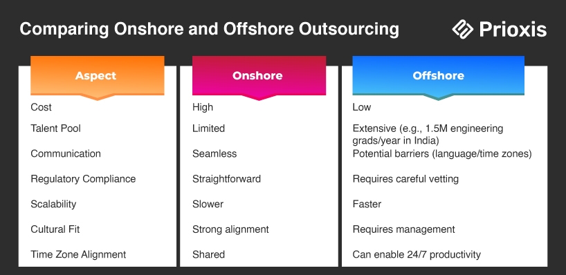If compliance is critical, onshore outsourcing simplifies adherence to local laws and standards.