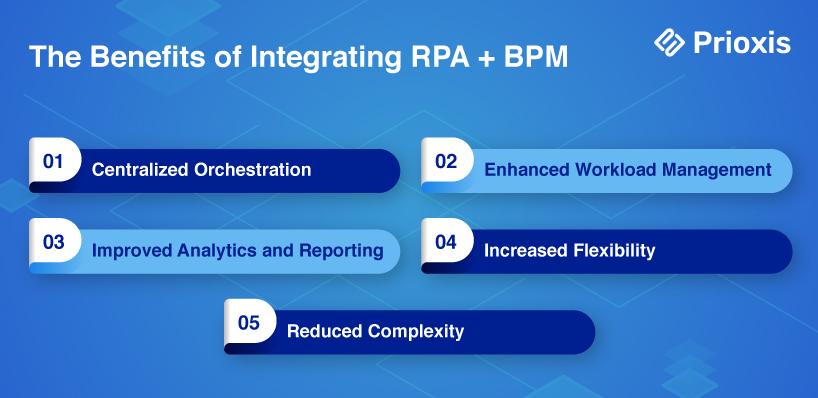 Reduced Complexity By integrating RPA and BPM, companies can simplify operations, making it easier for employees to adopt and use the combined system.