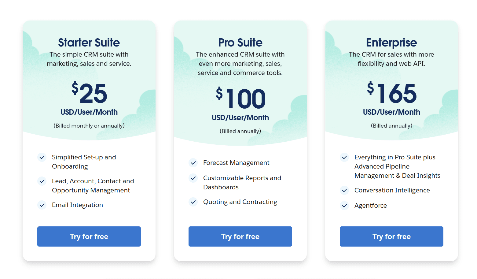 Note: If you're in a specialized industry like healthcare, you can also choose Salesforce Health Cloud. However, it comes with higher pricing tiers (around $250/user).