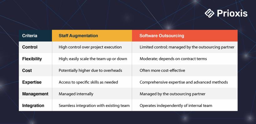 Staff Augmentation vs Outsourcing: A Comparative Table